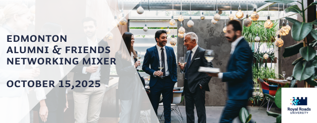 Join fellow RRU alumni, friends, and Vice-President, External Relations Susan Gee for an evening of conversation, connection, and community spirit. We’ll gather at The Amber Room at Matrix Hotel to enjoy delicious bites, lively company, and plenty of RRU pride. Bring along a friend or family member, enter to win exclusive RRU alumni swag, and celebrate what it means to be part of the RRU community!