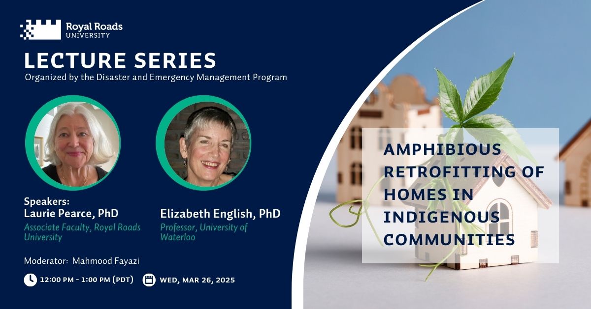 Join us on March 26, 2025 from noon to 1 p.m. PDT for an engaging webinar exploring Amphibious Retrofit Construction (ARC) with renowned industry expert Laurie Pearce and Dr Elizabeth English moderated by Mahmood Fayazi, assistant professor and program head of Royal Roads University's Disaster and Emergency Management program.