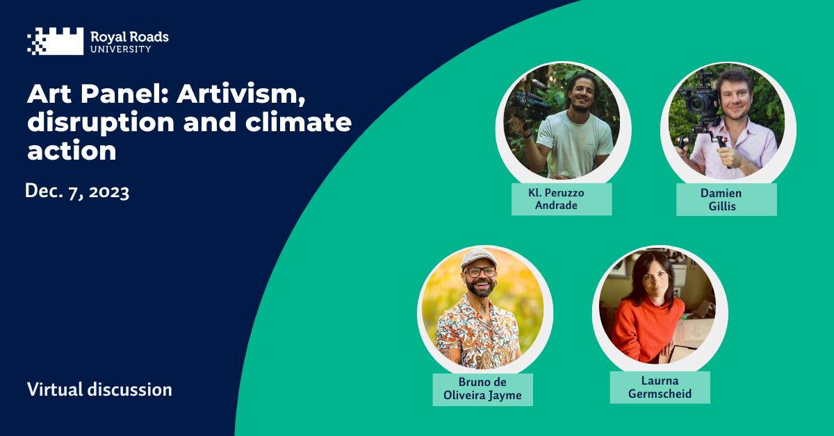 Join us for what promises to be a fascinating conversation about the role of art as activism and climate disruption. Hear from an inspirational panel of artists that includes Kl. Peruzzo Andrade, Damien Gillis, and Laurna Germscheid. Facilitated by Dr. Bruno de Oliveira Jayme, this discussion with renowned artists, filmmakers, journalists and creators will examine the role of “artivism” in today’s world.