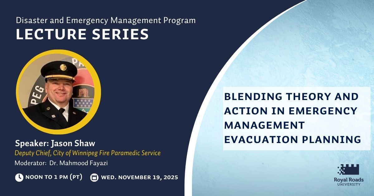 Evacuations of Canadians are becoming more frequent as the complexity, duration and severity of disasters are creating more impacts on our residents. This lecture series will cover the following points as we attempt to navigate the balance between theory and practice.