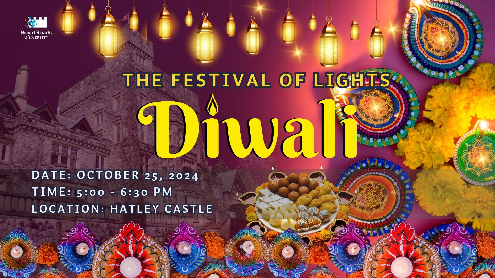 Don’t Miss Out! Come join us in celebrating light, hope, and the spirit of togetherness. We look forward to celebrating Diwali with you at Royal Roads University!
