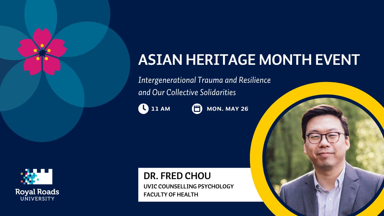 In this free, public event, Dr. Chou will provide an overview of the psychological research on intergenerational trauma and resilience in the Asian diaspora, with specific focus on his own research on this topic within the Chinese Canadian community. This event is hosted by Royal Roads President Philip Steenkamp in cooperation with RRU's Office of Human Rights an Accessibility.