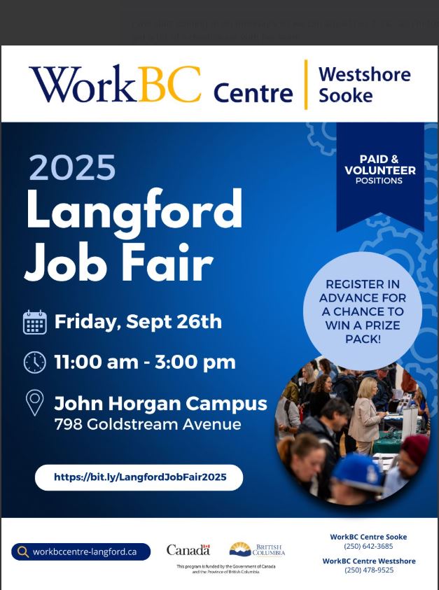 Network in person with some of Victoria, Langford and Sooke's best employers offering paid and volunteer opportunities. Presented by WorkBC Centre Westshore & Sooke and hosted at the brand-new RRU Langford, John Horgan Campus!