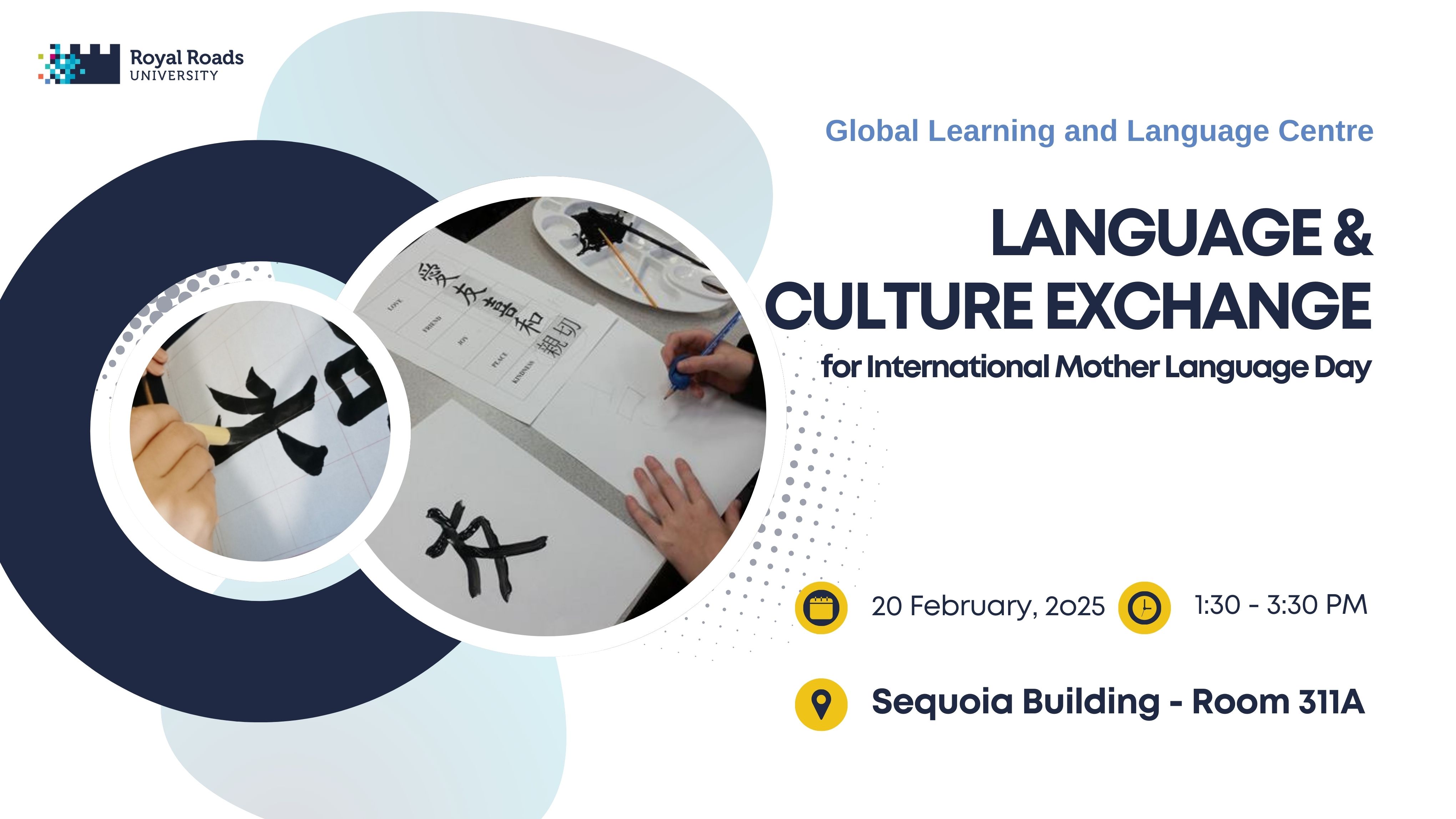 In celebration of the 25th anniversary of UN International Mother Language Day, the Global Learning & Language Centre will host a calligraphy workshop and cultural exchange event to share messages of kindness in a variety of languages!