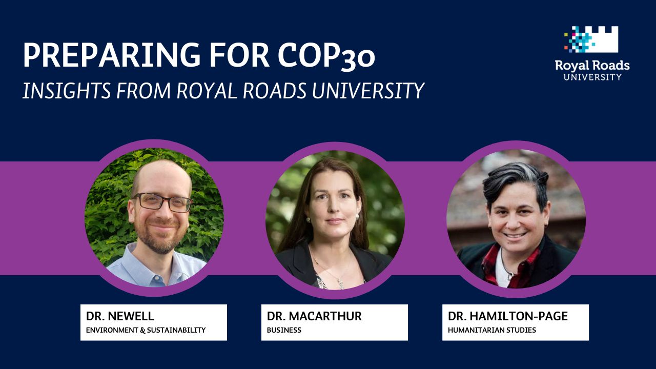 Join Royal Roads University faculty and instructors for a timely and thought-provoking webinar exploring the upcoming United Nations Climate Change Conference (COP30), scheduled to take place in Belém, Brazil, in 2025.