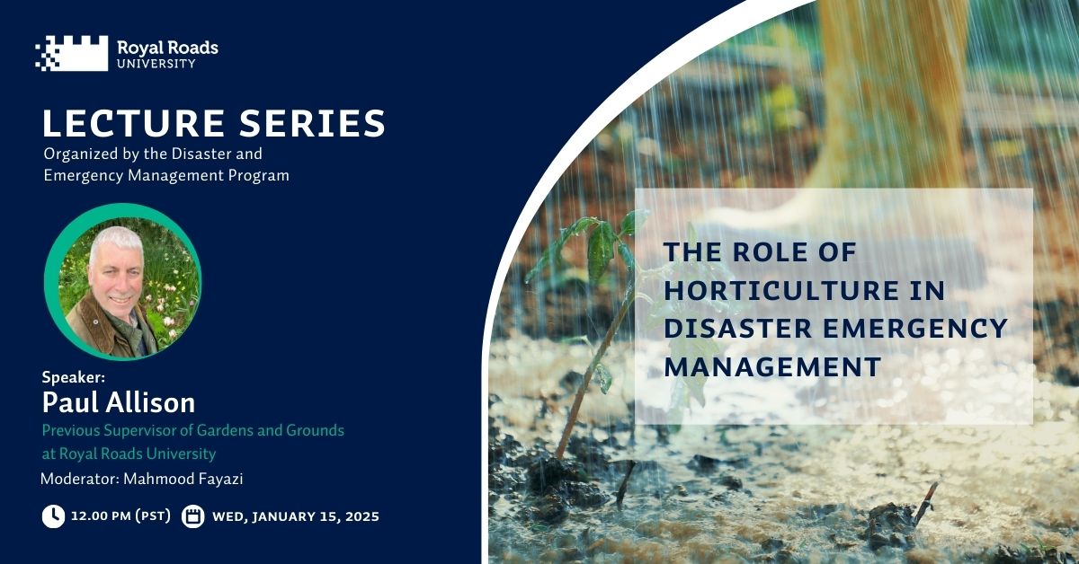 Join us for an insightful presentation by Dr. Paul Allison, Associate Professor and former Supervisor of Gardens and Grounds at Royal Roads University, as he explores the powerful intersection of horticulture and disaster recovery. In this lecture, Dr. Allison will highlight case studies on the application of horticultural therapy following the devastating 2011 Tōhoku earthquake and tsunami in Japan — a disaster that claimed thousands of lives and displaced hundreds of thousands.