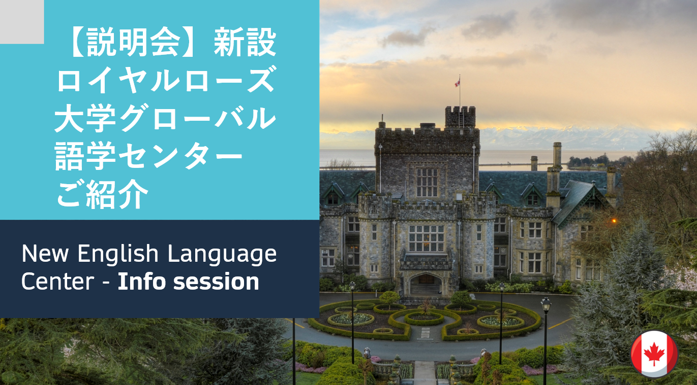 カナダの公立大学、ロイヤルローズ大学に新しく設立された語学センターを紹介するオンライン説明会にご参加ください。本校はブリティッシュコロンビア州の州都、ビクトリアに位置し、キャンパスは世界で最も美しい大学の1校として選ばれたことがあります。ハリウッド映画デッドプール、X-MENなどが撮影されたロケ地としても有名です。短期、長期の語学研修には最適な大学になります。