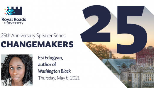 On Thursday, May 6, 2021 at 4 p.m., join Royal Roads President Philip Steenkamp as he hosts our 25th Anniversary Changemakers Speakers Series. Victoria-based Esi Edugyan will be our virtual guest. This talk will stream live on our Facebook and YouTube channels. Visit the Facebook event page.