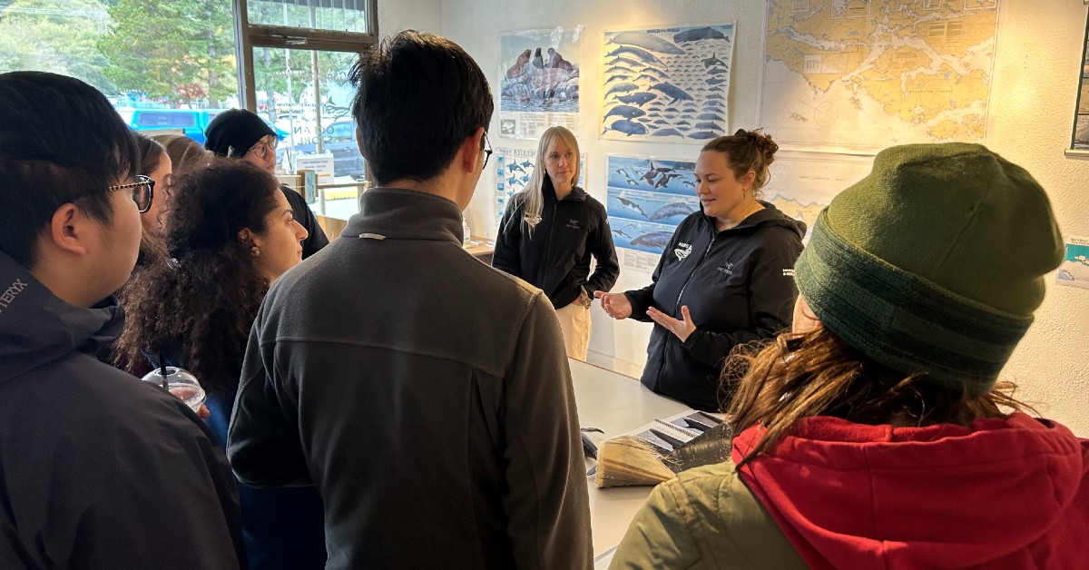 The five-night field school “started in Nanaimo, and we travelled up to Campbell River, to Alert Bay, and then to Port Hardy,” Pam McGarel, associate faculty and tour leader, explains. McGarel has a Masters of Science in International Development and Sustainable Tourism and is the founder of Mosaic Earth Travel.